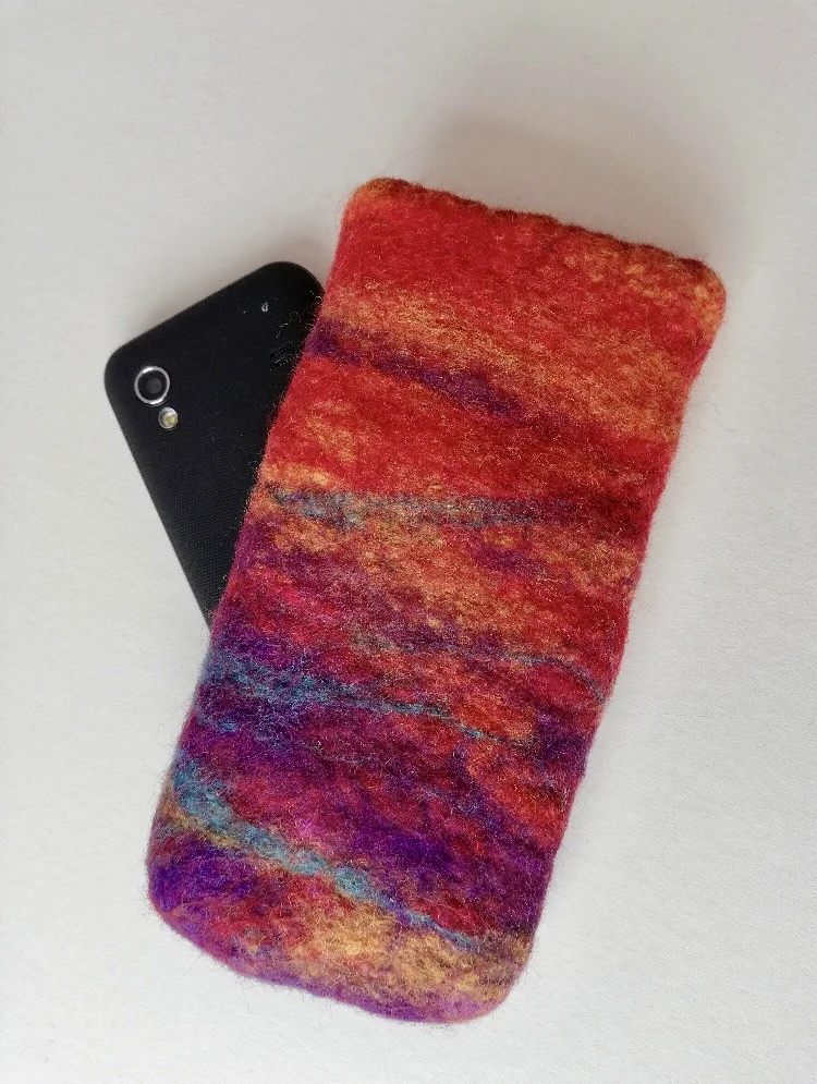 In this class you will learn wool carding techniques and wet resist felting. This pouch can be used for your cellphone, eyeglasses, or any fragile object in need of protection. Simple, elegant and practical. No prior felting experience required. Be prepared to get a little wet and soapy. Wool can be purchased on site. 2oz of merino or corriedale wool is suggested.